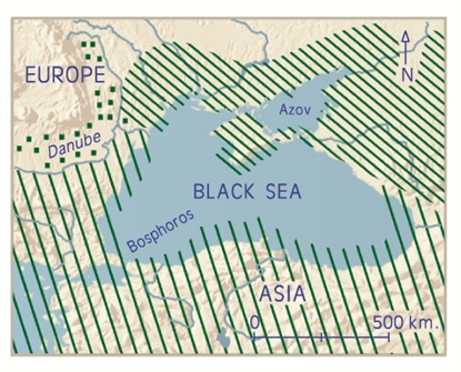 The map depicts the Ottoman expansion until the final control of the Black Sea. The Black Sea, Kara Deniz in Turkish, the Great Sea of the western shipowners, merchants, missionaries and diplomats in the 13th-15th c., was absorbed by the Ottoman Empire and placed under exclusive Ottoman control between 1453 and 1538 (as is indicated by the green hatched areas on the map).