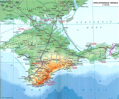 Geomorphological map of the Crimea with main cities and roads (2003)