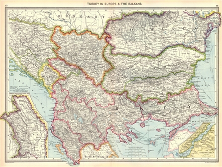 Ο χάρτης της Νοτιοανατολικής Ευρώπης (Αδριατική – Μαύρη Θάλασσα και Ρουμανία – βόρεια σύνορα Βασιλείου της Ελλάδος) αποτυπώνει με μεγάλη ακρίβεια την πολιτική γεωγραφία αυτής της εκτεταμένης περιοχής το 1910, δηλαδή δύο χρόνια πριν από τους Βαλκανικούς πολέμους και τέσσερα πριν από την έναρξη του Πρώτου Παγκόσμιου πολέμου –όταν αλλάζει δραματικά ο γεωπολιτικός χαρακτήρας όλης της Ανατολής.