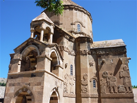 Αχταμάρ, Βασιλικός ναός Τιμίου Σταυρού φωτ 175. Το καμπαναριό, που χρονολογείται τον 19ο αι., βρίσκεται στη θέση που υπήρχε το κλιμακοστάσιο με την είσοδο, από όπου ο βασιλιάς Γκαγκίκ εισερχόταν στο ναό. Λήψη από ΝΑ.