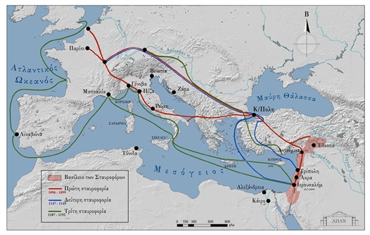 Η πορεία των τριών πρώτων Σταυροφοριών προς τη Μέση Ανατολή και το Βασίλειο των Σταυροφόρων, 1096-1192