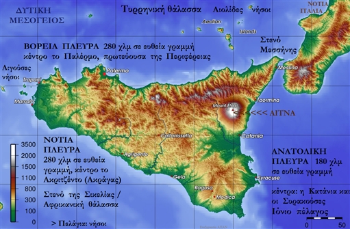 Από το Τυρρηνικό Πέλαγος και τα νησιά Λίπαρι (τις ηφαιστειογενείς Αιολίδες νήσους) έως τις Συρακούσες και το βορειοδυτικό Ιόνιο Πέλαγος
