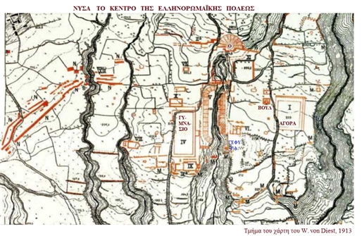 Νύσα του Μαιάνδρου στη μικρασιατική Καρία: το κέντρο της αρχαίας πόλεως (λεπτομ. του χάρτη του 1913)