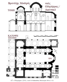 Μυστράς, Βροντόχι: Τομή και κάτοψη της Οδηγήτριας, καθολικού της Μονής Βροντοχίου