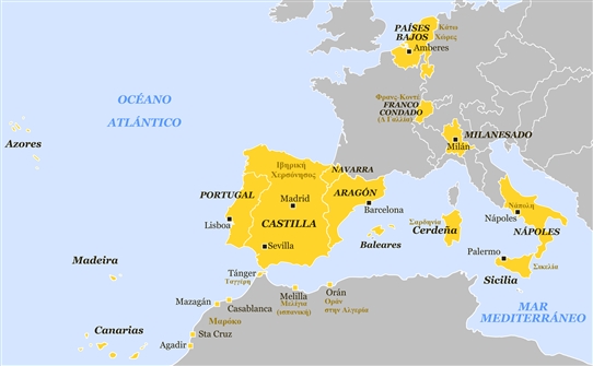 Dominions of Philip II of Spain in Europe and North Africa in 1580 / Τον καιρό του Φιλίππου Β΄: οι ευρωπαϊκές και βορειοαφρικανικές κτήσεις της Ισπανίας το 1580