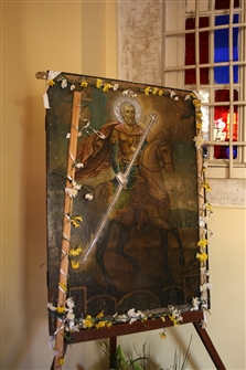 Η ανθοστόλιστη εικόνα του αγίου Μηνά στον εξωνάρθηκα
