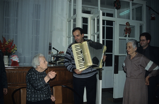 Χριστούγεννα του 1999 με το ακορντεόν του Γιάννη Δερμιτζόγλου στο Ρωμαίικο Γηροκομείο στο Μπαλουκλί