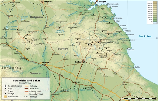 Ο τίτλος του χάρτη: ‘Topographic map of Strandzha and Sakar’
