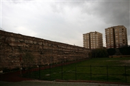 Βυζαντινή δεξαμενή στο Μπακίρκιοϊ: τμήμα της νότιας αναστηλωμένης εξωτ. πλευράς